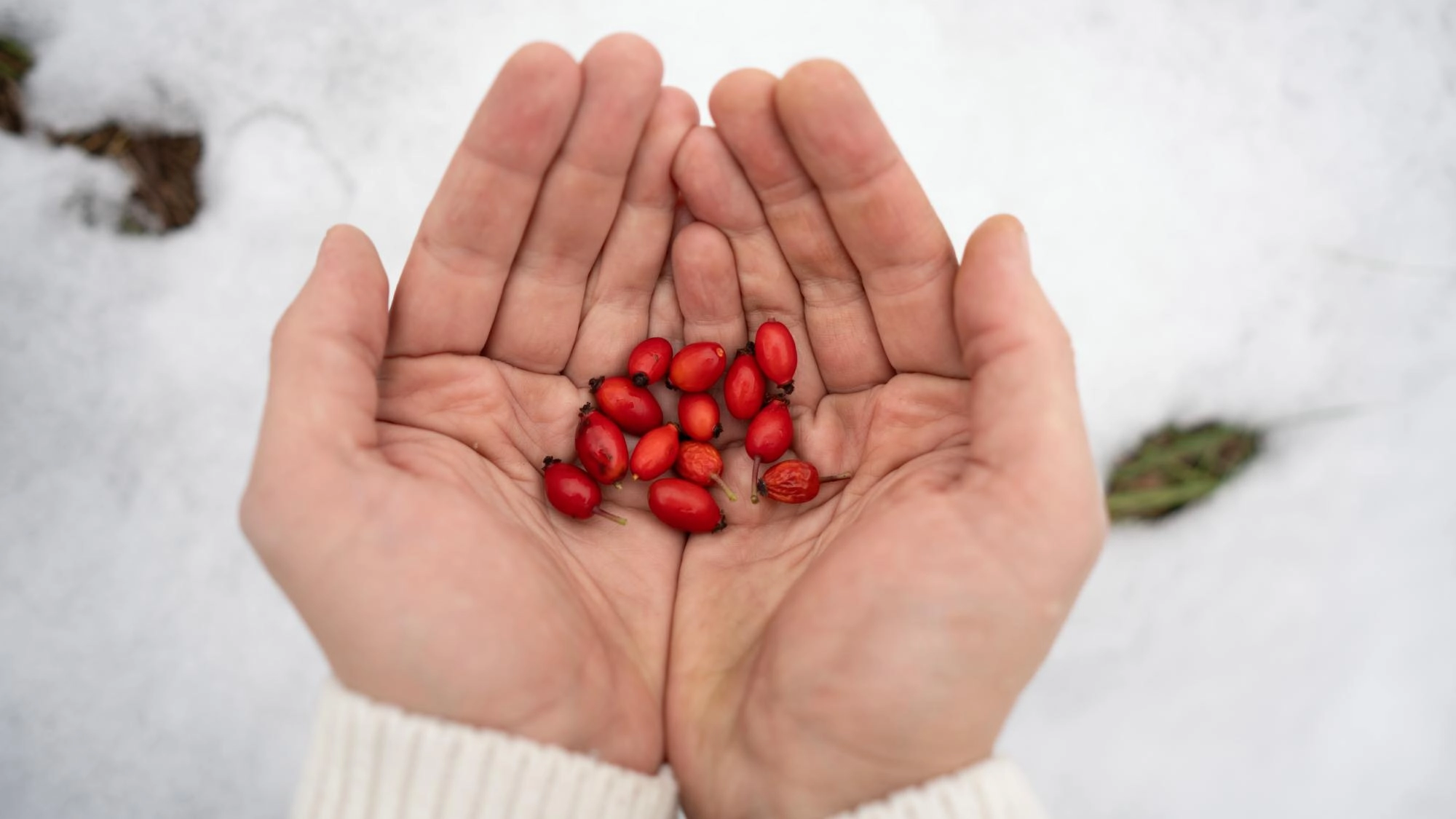 Wild roses are found all around the world in a wide variety of natural habitats. All bloom in spring and summer and you can forage for hips in fall and winter. Identify them by their orange or red color, their oblong shape, and the small wisps of “hair” protruding from the bottom of the rose hip.