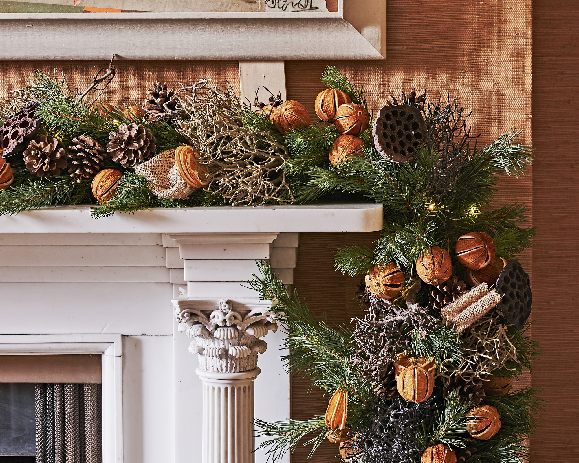 Make a pinecone garland to sit above the fireplace and add a warming focal point to the room.