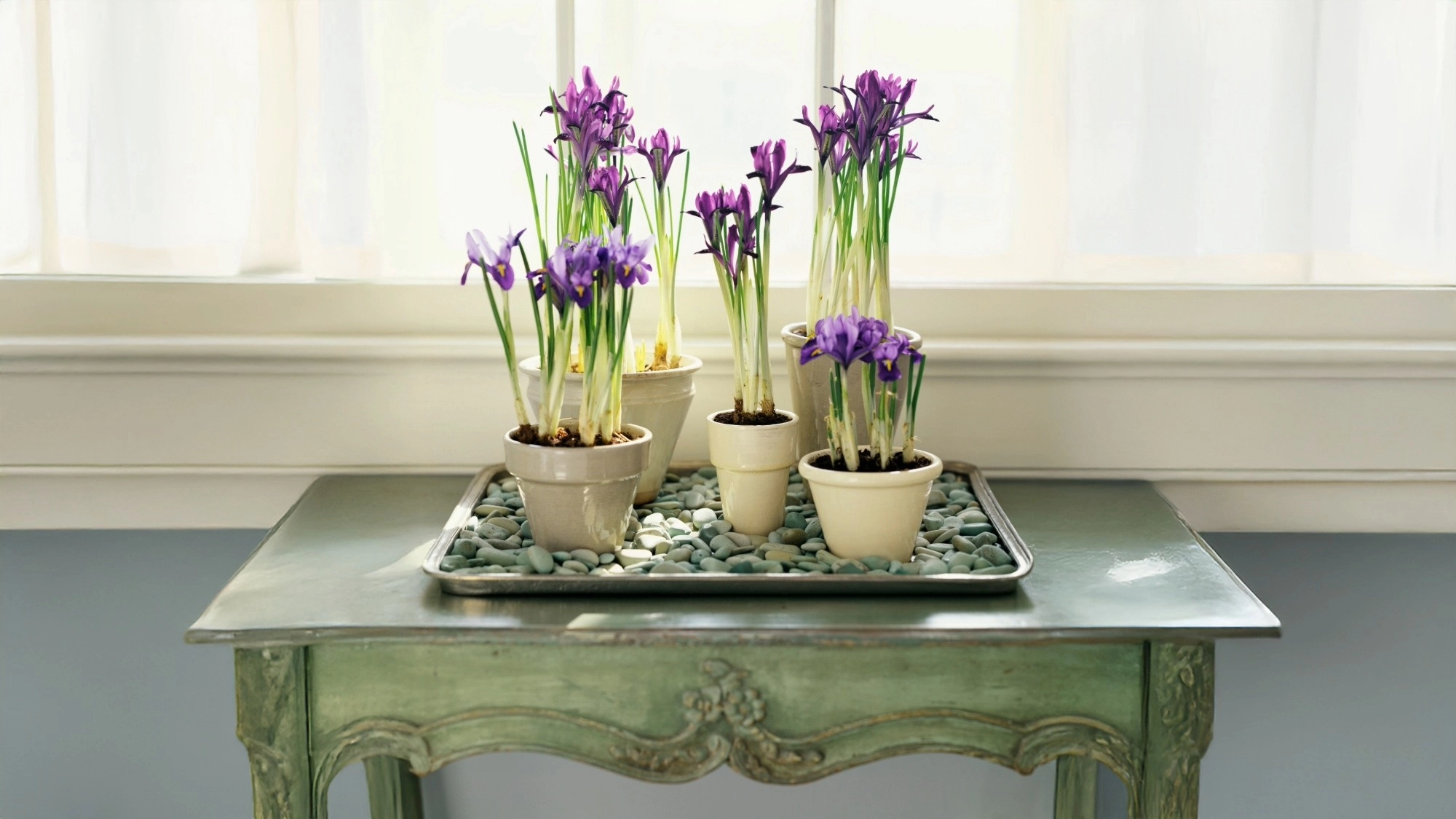 Set potted plants on top of the rocks. Just keep adding water as the level drops and you have a simple, easy source of humidity for your houseplants.